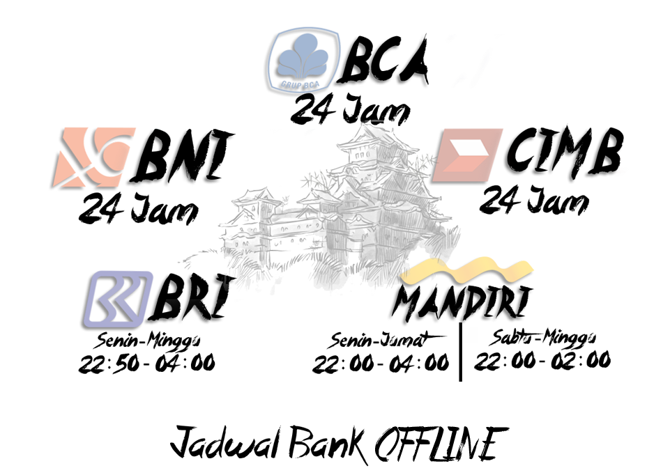 Diatas merupakan jadwal bank OffLine yang ada pada bank yang tersedia di atas dan kami juga menerima berbagai jenis transaki dari berbagai pengiriman dana seperti OVO, DOKU WALLET, SAHABAT SAMPOERNA, LINKAJA dan masih banyak lagi jenis lainya yang kami terima.